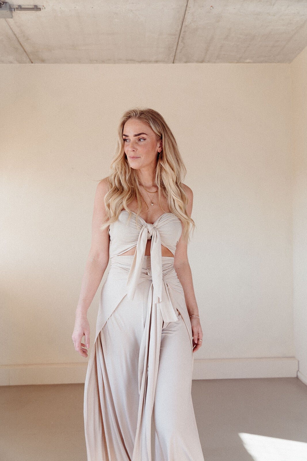 The wrap pants are made out of a beautiful bamboo stretch fabric and can be worn on a size 34 until 44, the pants will be made in your perfect langth size, you can leave the measurements in the notes while placing the order. T