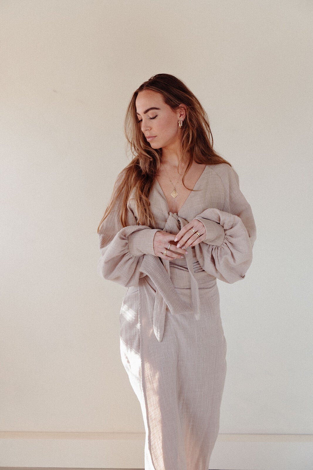 This wrap top is made out of the most beautiful tetra cotton garment with a linen look. The wrap top is made by size, you can leave your measurements (arm length, waist and bust size in cm ) in the notes while placing your order.