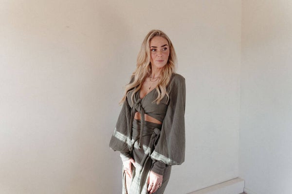 The wrap skirt is made out of the most beautiful tetra cotton fabric and is made by size, you can leave your own measurements ( waist, hips and length in cm ) in the notes while placing an order