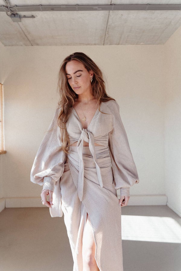 The wrap skirt is made out of the most beautiful tetra cotton fabric and is made by size, you can leave your own measurements ( waist, hips and length in cm ) in the notes while placing an order