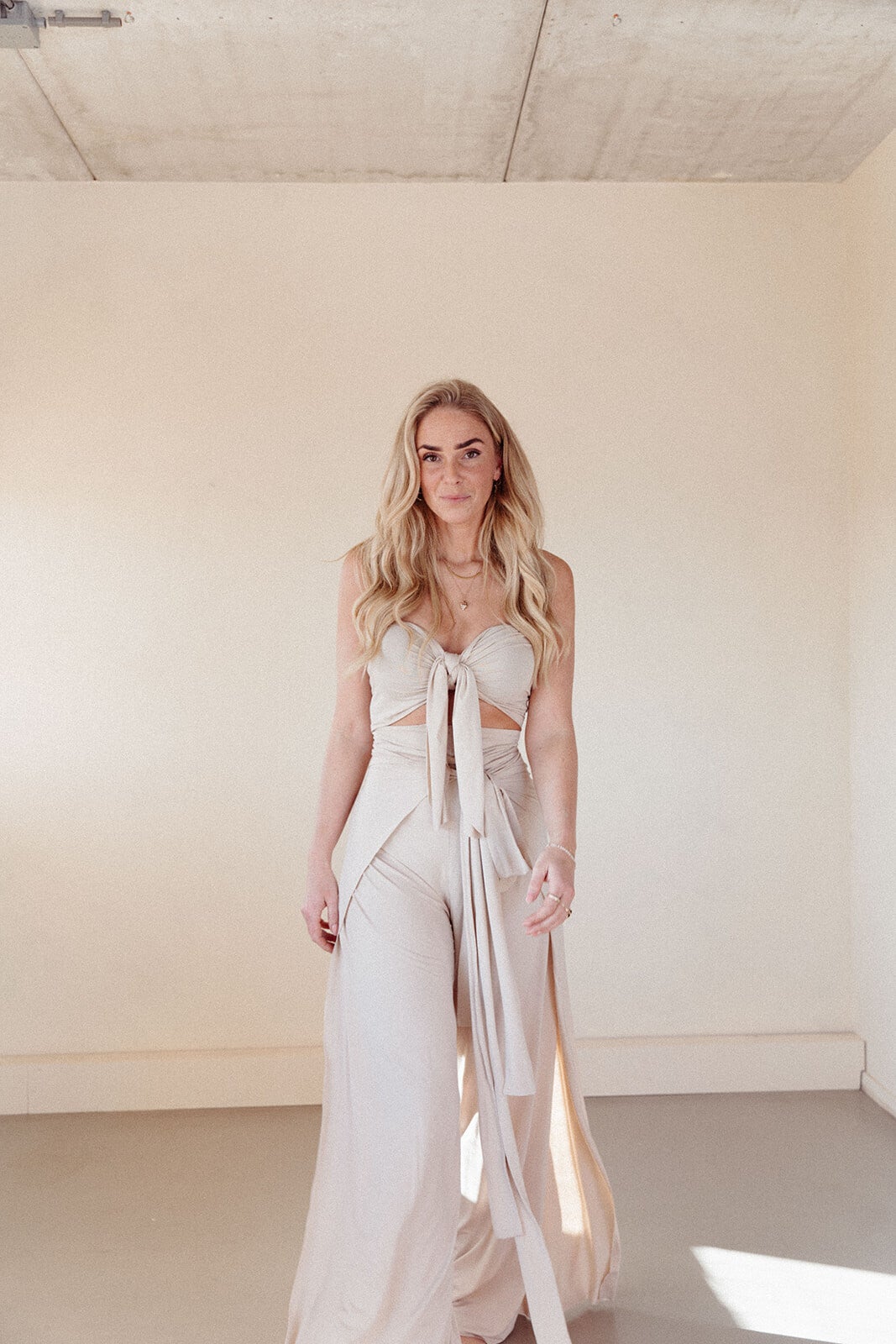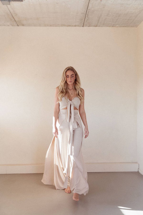 This two piece is made out of the most beautiful hennep elastane fabric, its comfy and stretchy and is worn to feel very feminine, you can leave your measurements ( inner leg length, waist, hips and buste in cm ) and leave them in the notes while placing your order.