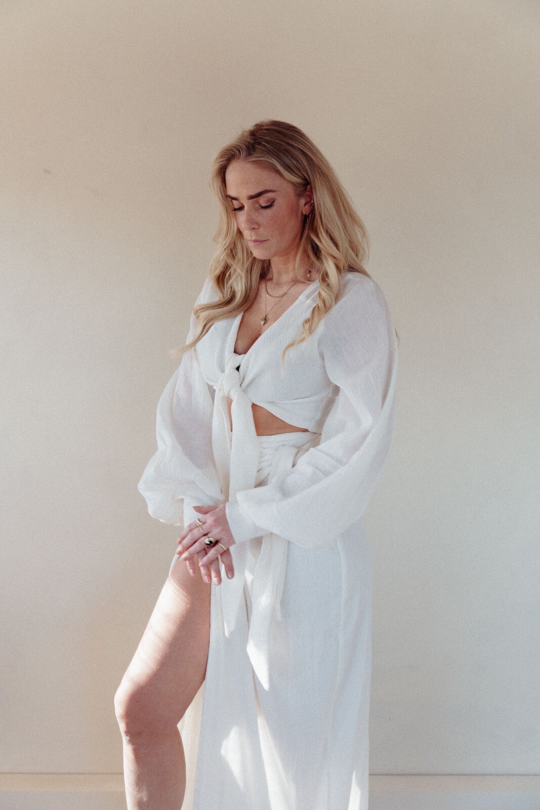 This two piece is made out of the most beautiful tetra cotton garment with a linen look. The wrap top is made by size, you can leave your measurements (arm length, waist and bust size and the length you prefer for the skirt from waist untill the perfect length in cm ) in the notes while placing your order.