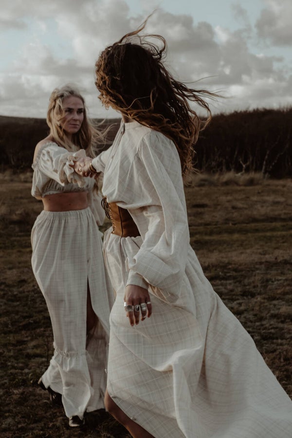 The Elisabeth dress is made out of a beautiful linen cotton fabric and can be made by size from a size 34 until 42, you can add your own measurements in the notes while ordering your dream dress, add your waist, hips, bust and total length from waist until the length you prefer.