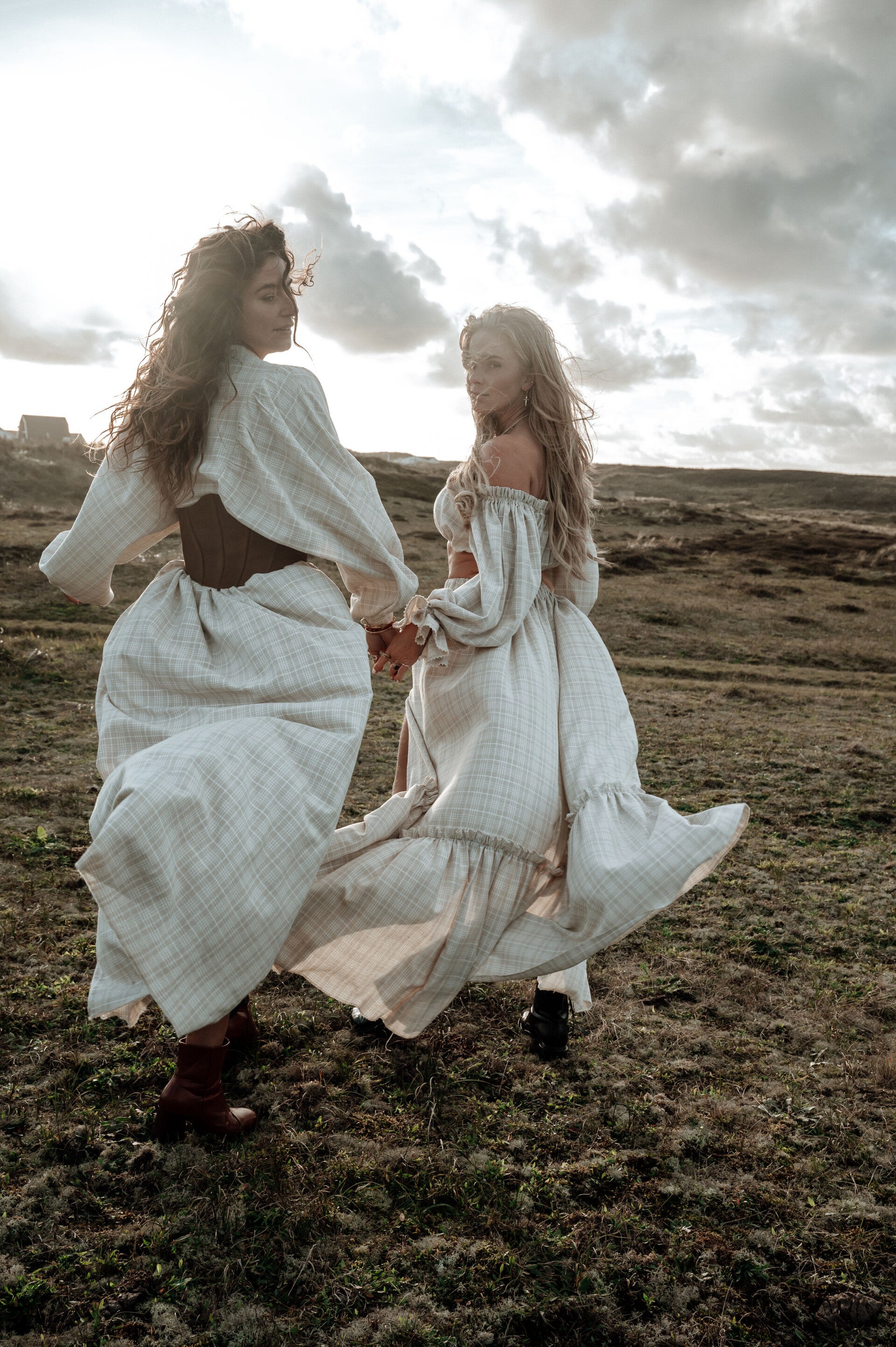 The eden two piece dress is made out of a beautiful linen/cotton fabric and can be made by size from a size 34 until 42, you can add your own measurements in the notes while ordering your dream dress, add your waist, hips, bust and total length from waist until the length you prefer.