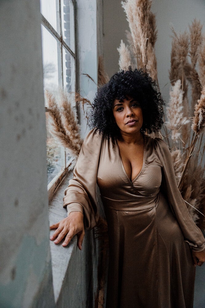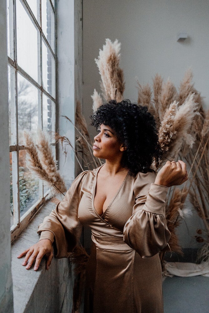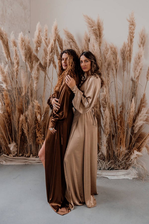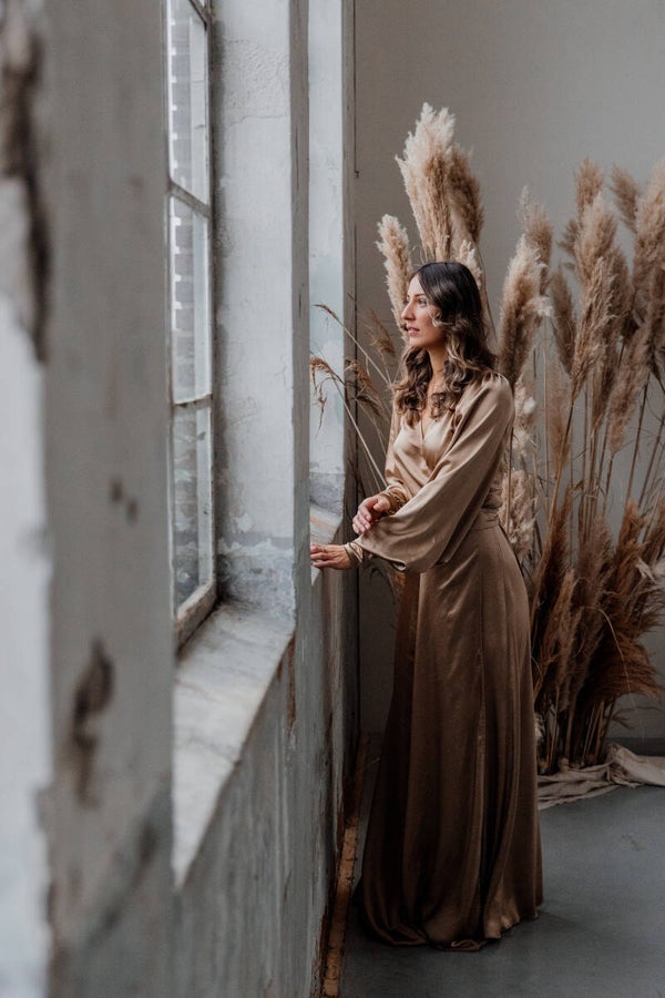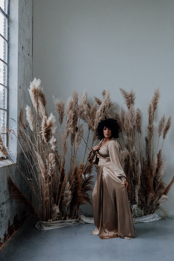The wisdom dress in satin. this dress is made from a beautiful stretchy satin fabric. Available to be worn from a size 34 until 42.